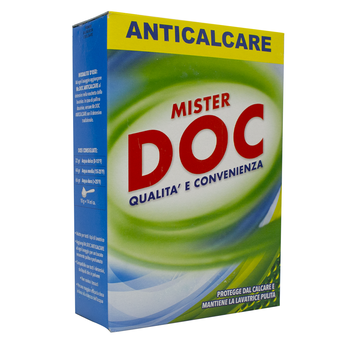 Impedisce la formazione di incrostazioni di calcare contenuto nell'acqua che danneggiano le serpentine del cestello delle lavatrici.