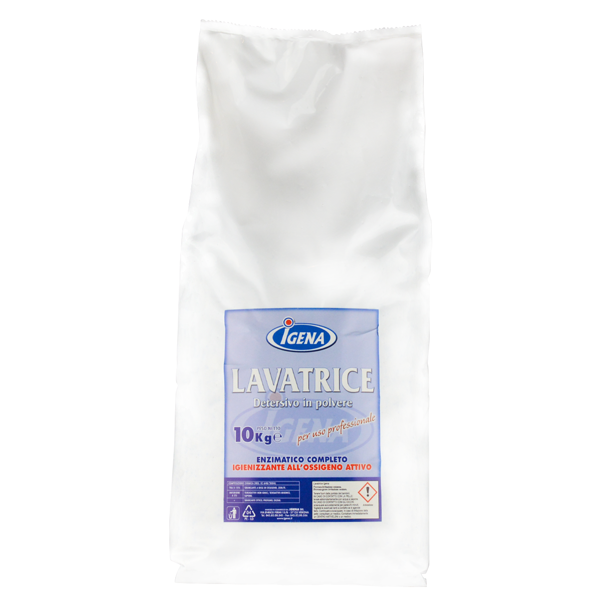Detersivo in polvere enzimatico e igienizzante con ossigeno attivo per il lavaggio manuale e in macchina di tessuti in cotone e poliestere.