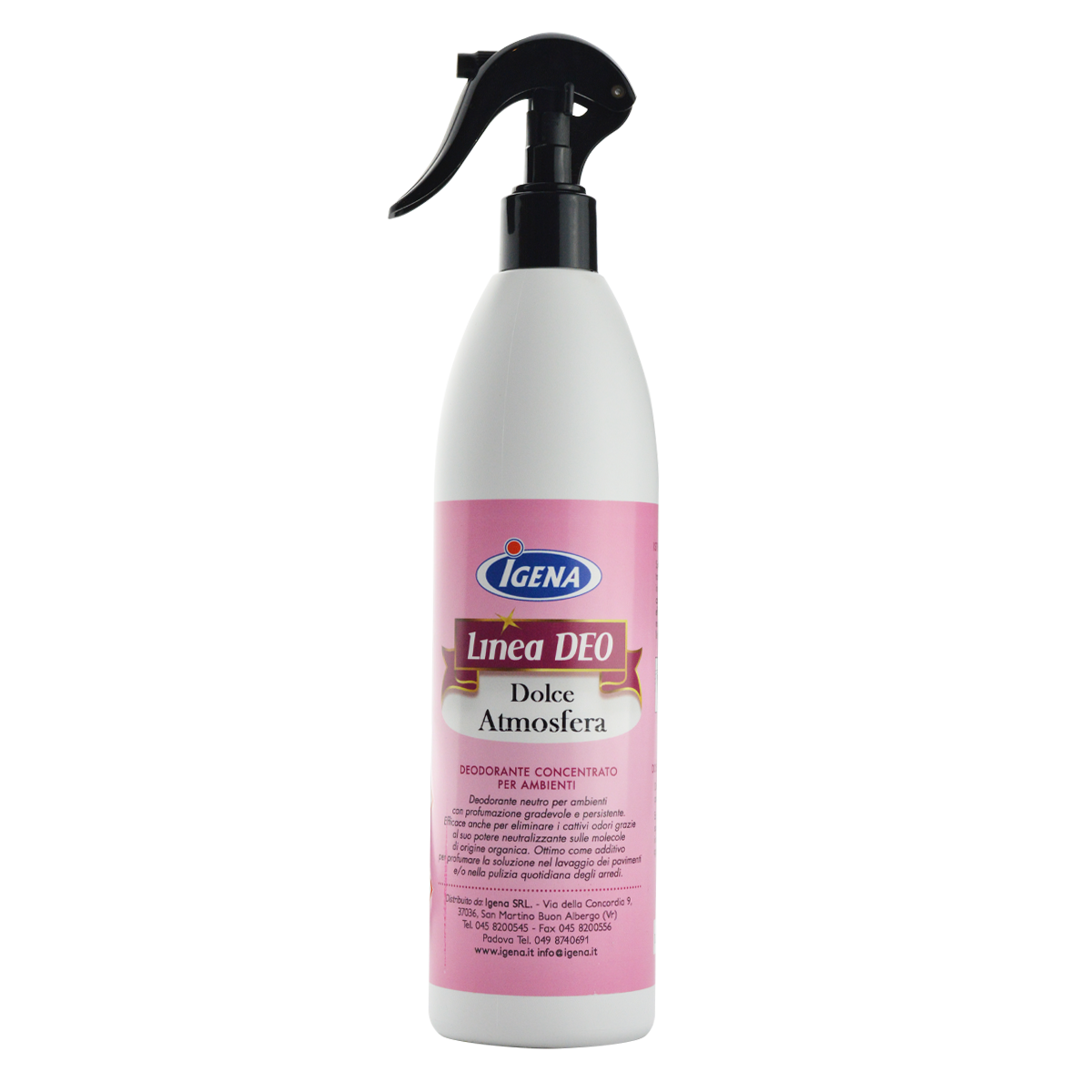 Deodorante neutro per ambienti con profumazione gradevole e persistente. Efficace anche per eliminare i cattivi odori grazie al suo potere neutralizzante sulle molecole di origine organica. Ottimo come additivo per profumare la soluzione nel lavaggio pavimento e/o nella pulizia quotidiana degli arredi.