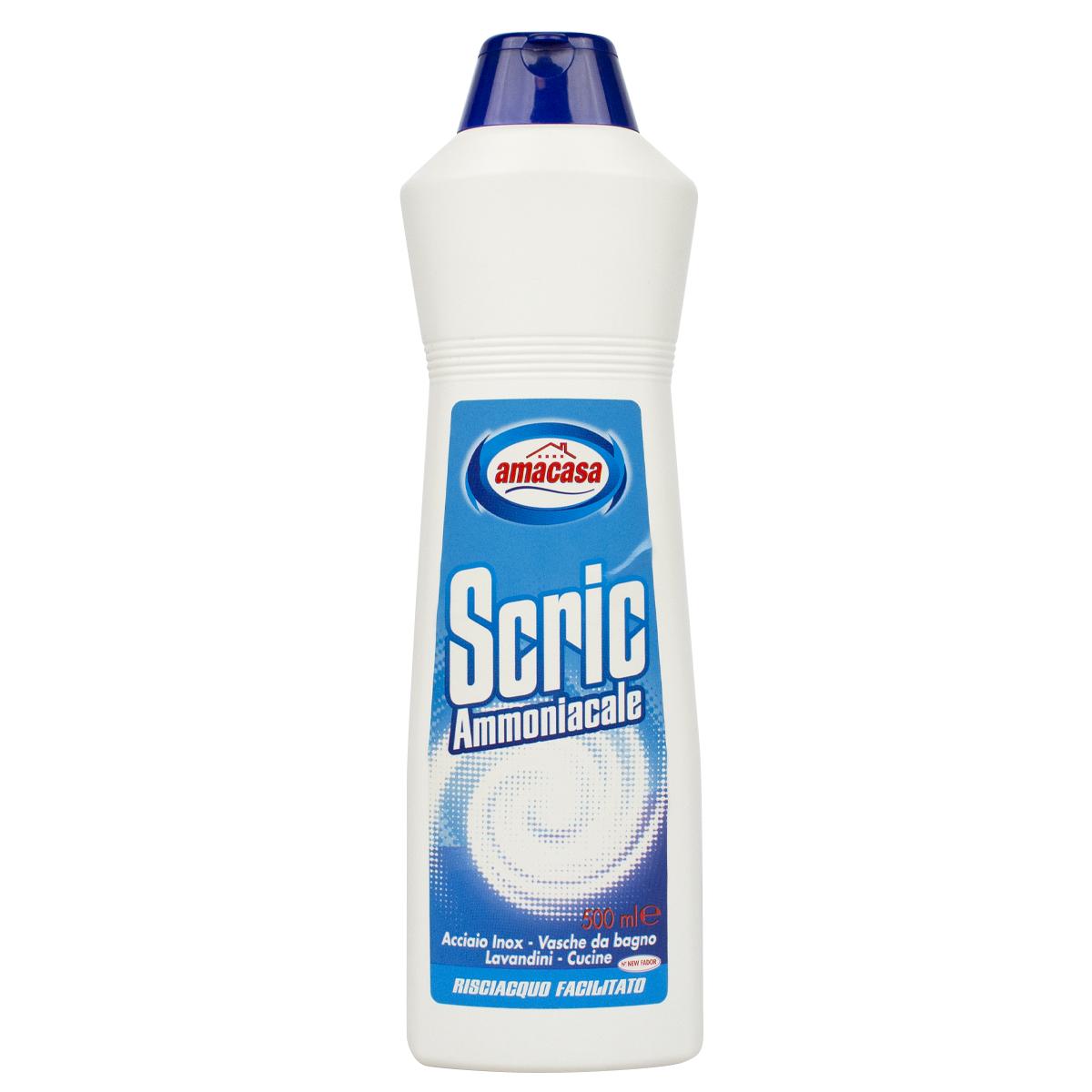 Crema detergente ammoniacale per la pulizia a fondo senza graffiare i lavandini, vasche da bagno, lavabi e qualsiasi superficie delicata, smaltata o inox. Gradevolmente profumata