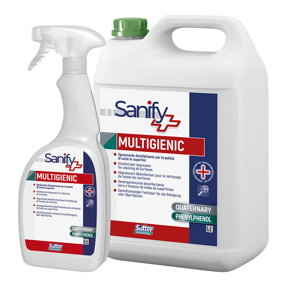 - Sgrassante disinfettante per la pulizia di tutte le superfici